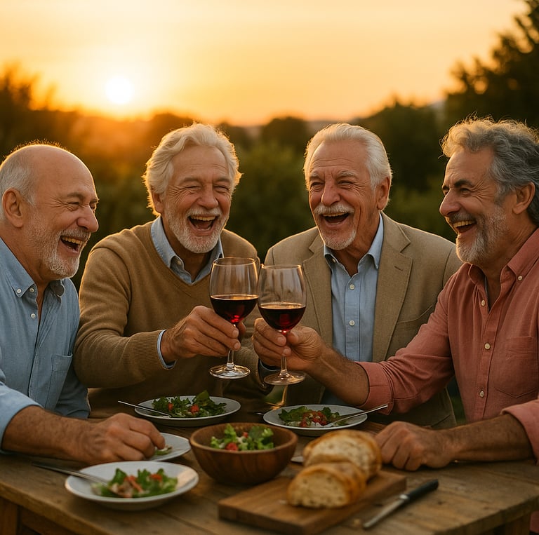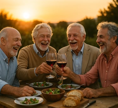 De Zilvervossen – alias Vita Maxima – is een exclusieve club voor mannen van 60+ die hun werkpak definitief hebben opgeborgen en nu méér dan ooit hun vrijheid omarmen. We hebben de financiële ruggengraat, de ervaring en vooral de goesting om elk moment op te slurpen — van culinaire revelaties tot adembenemende reizen. Beleving staat centraal, gezondheid is heilig, en geluk… dat is wat we samen cultiveren.